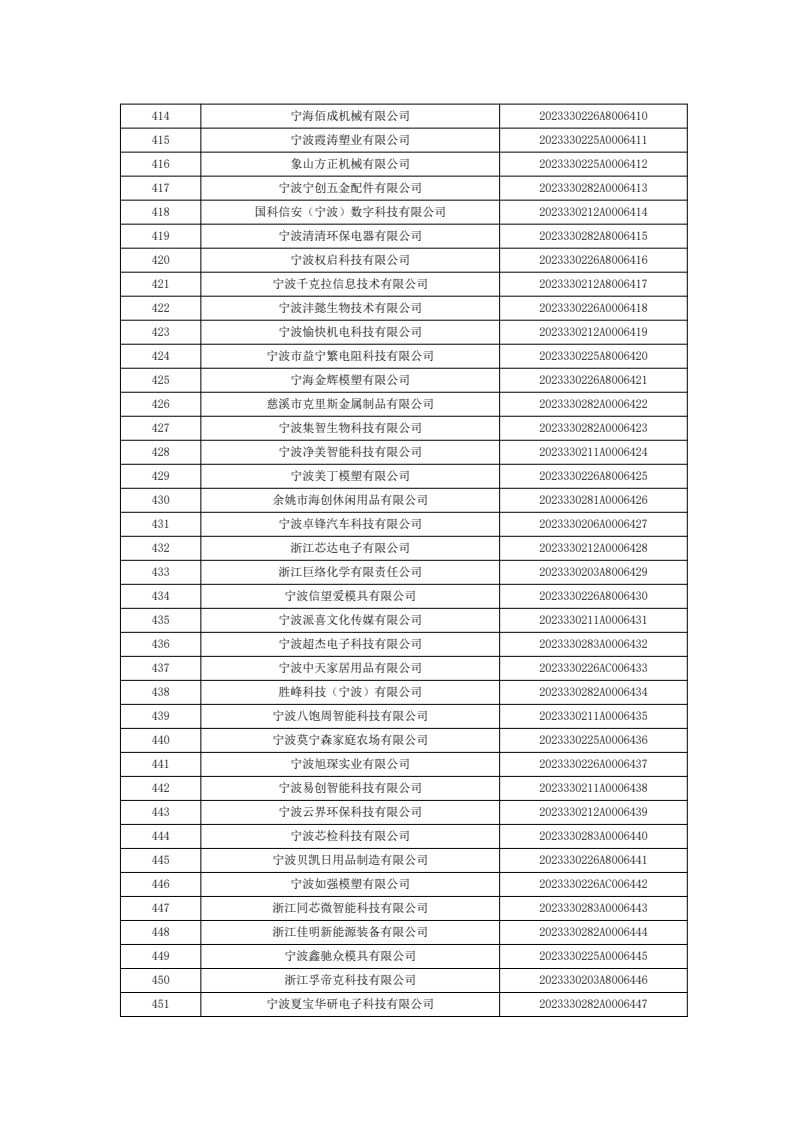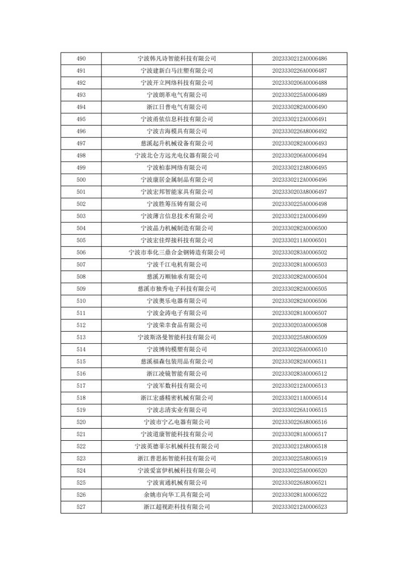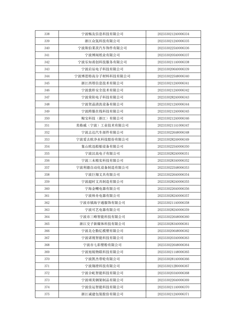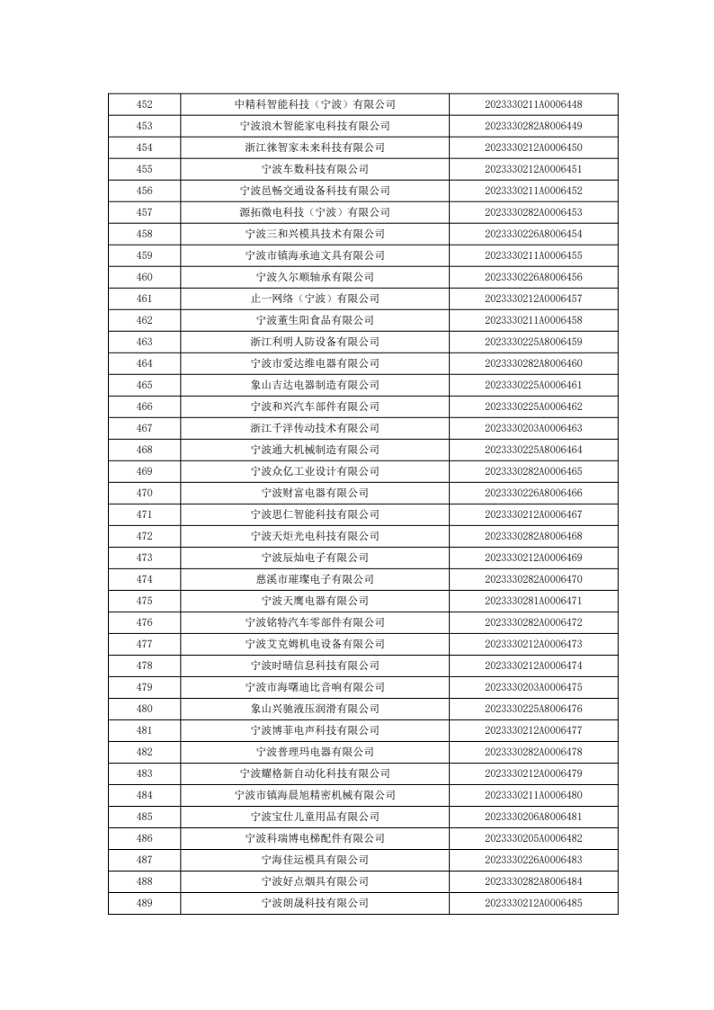 名单公示 | 关于宁波市2023年度第七批入库科技型中小企业的公告