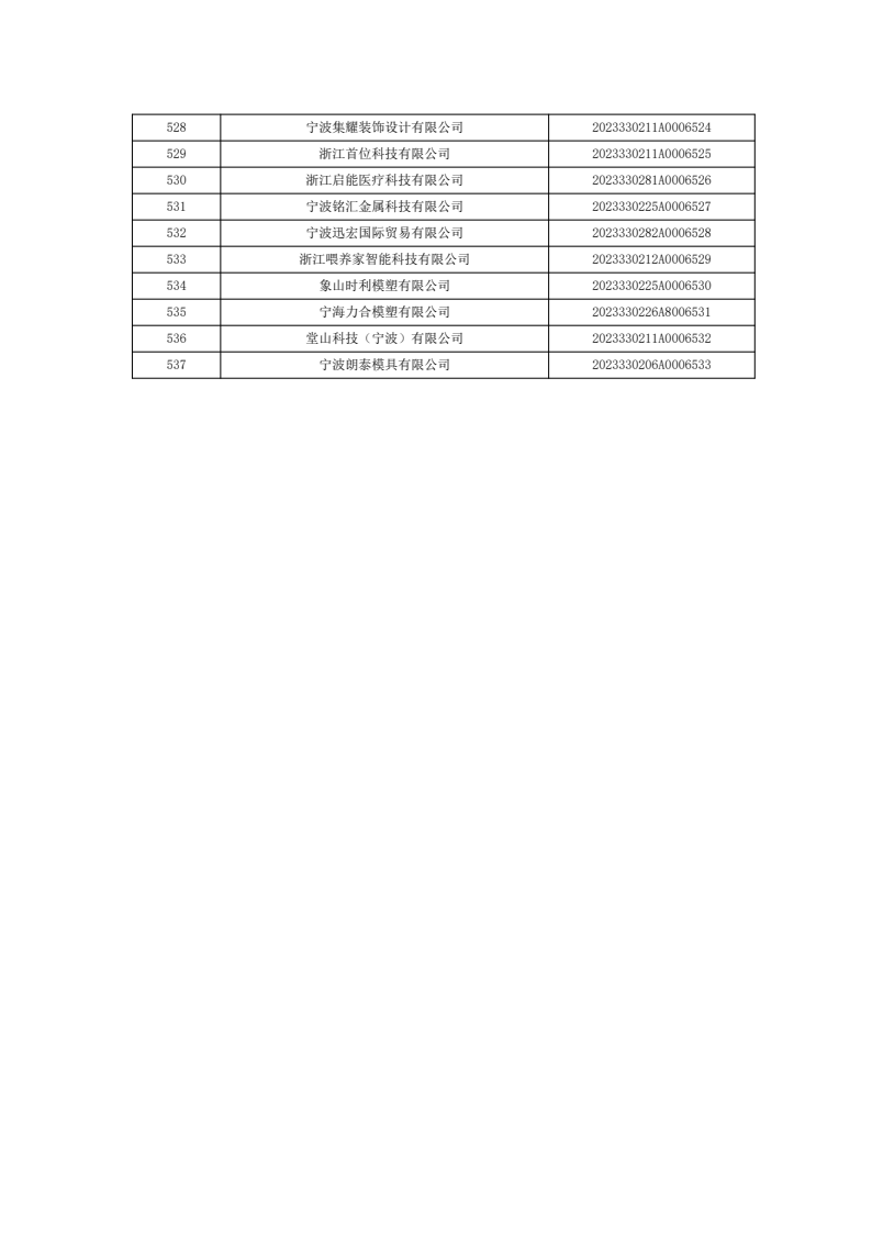 根据《科技型中小企业评价办法》(国科发政〔2017〕115号)和《科技型中小企业评价服务工作指引》(国科火字〔2022〕67号)有关要求,经企业自评、评价机构审核、社会公示,现将宁波市2023年第七批537家入库科技型中小企业名单(详见附件)予以公告。