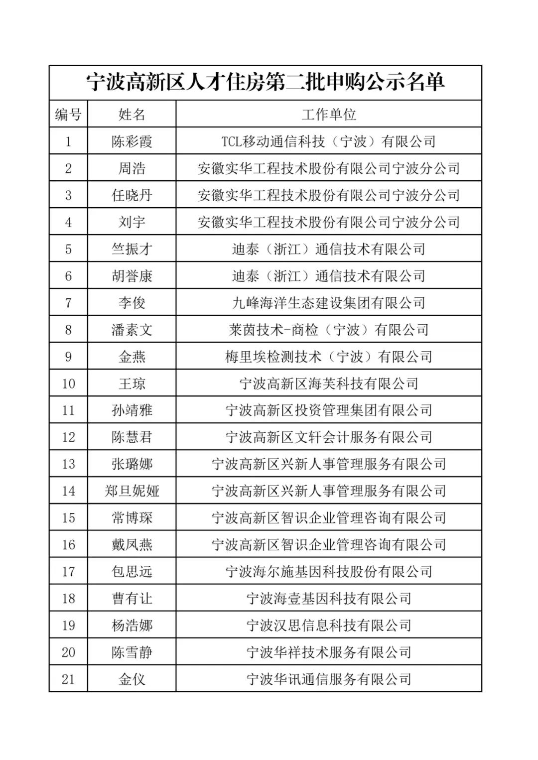 人才住房 | 宁波高新区人才住房第二批申购名单公示