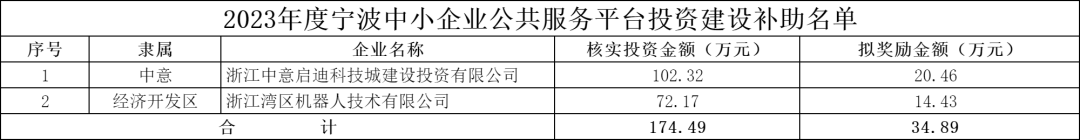 一、奖励资金名称:2023年度宁波中小企业公共服务平台投资建设补助资金